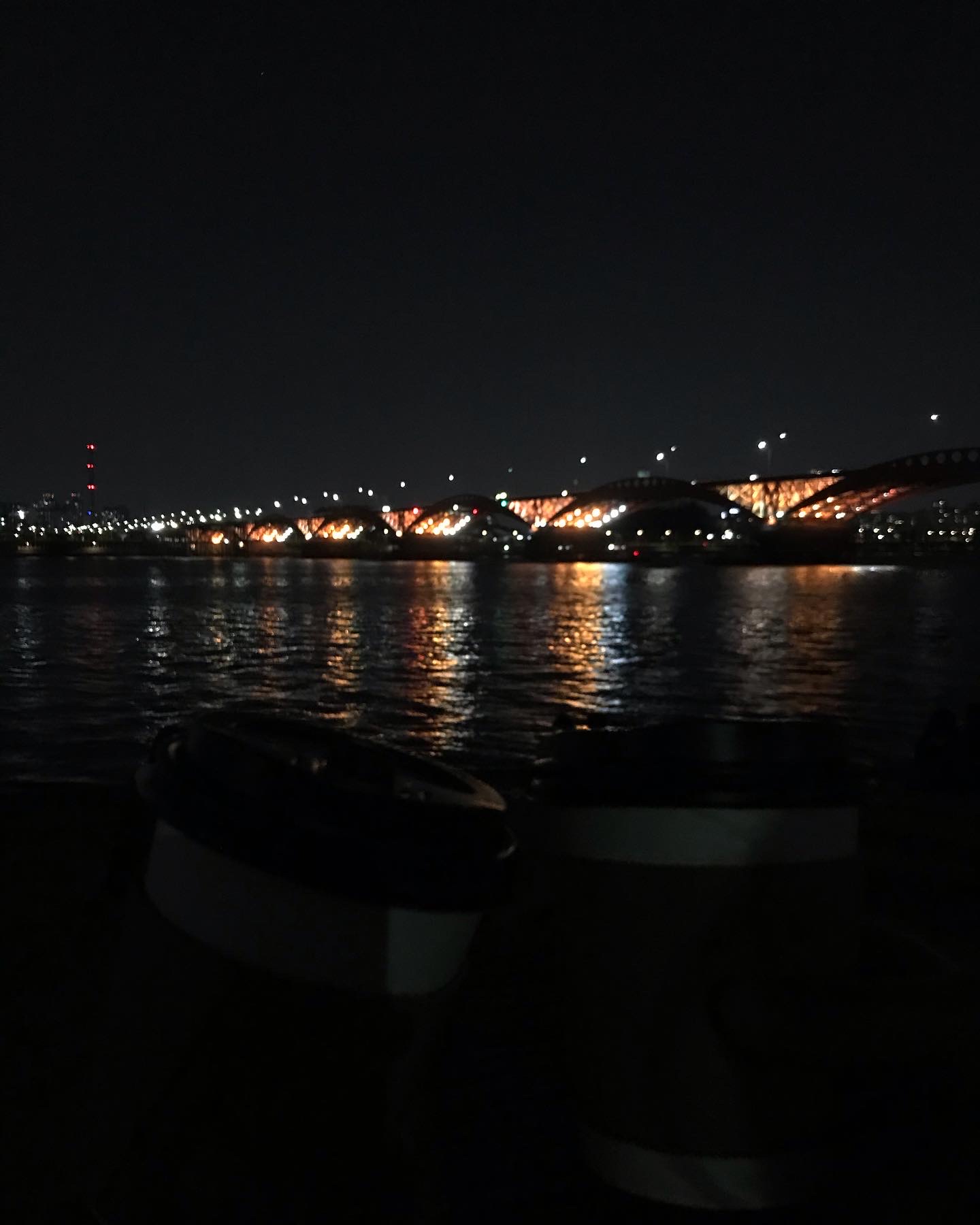 한강 야경을 배경으로 커피한잔 해주고 나니 이제야 집에갈 마음이 생긴다 ㅋㅋㅋㅋㅋㅋ