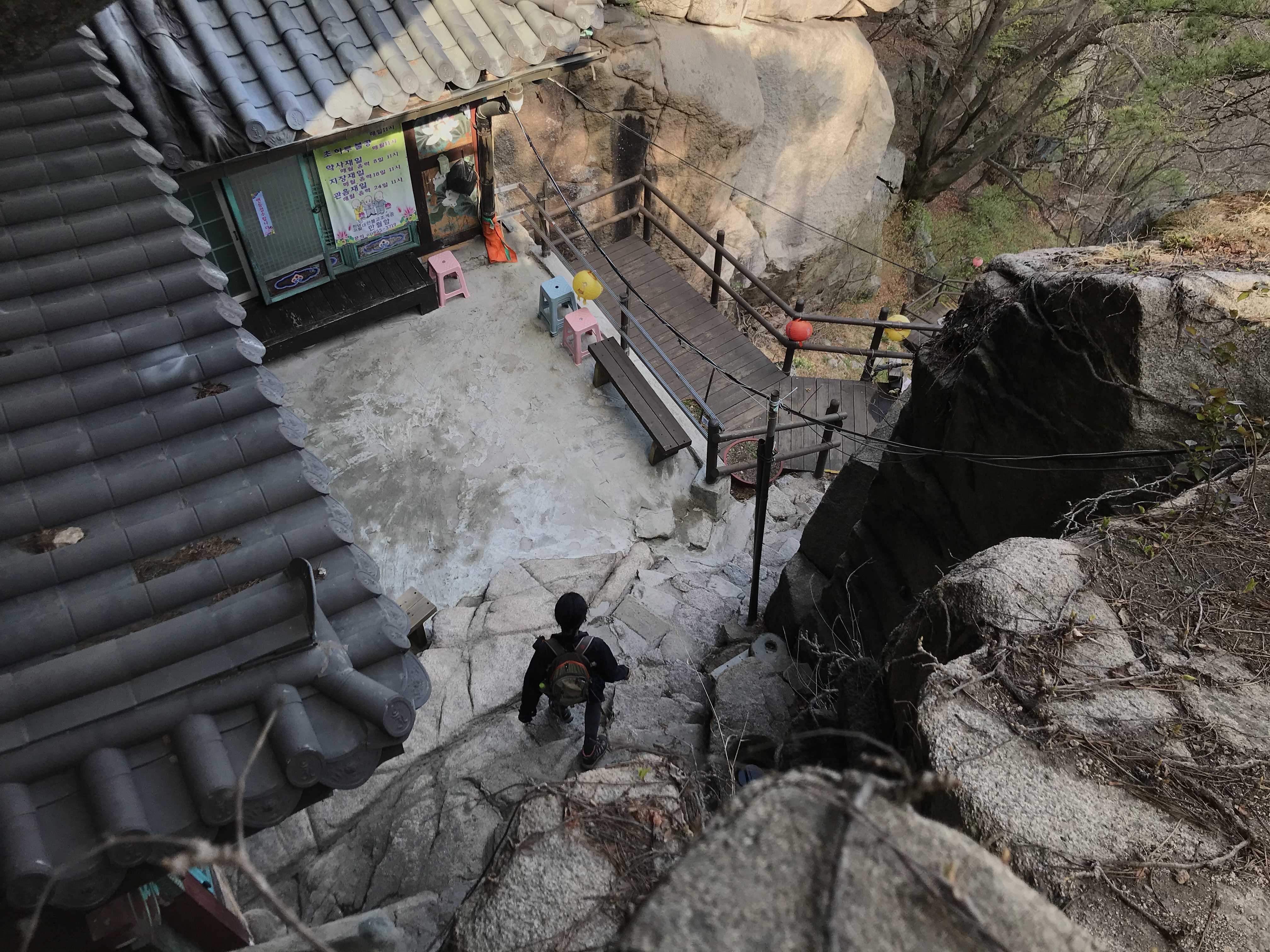 아주 길이 좁아 한명씩 올라야하고, 경사가 엄청난 바윗돌이라 정말 조심해야한다.