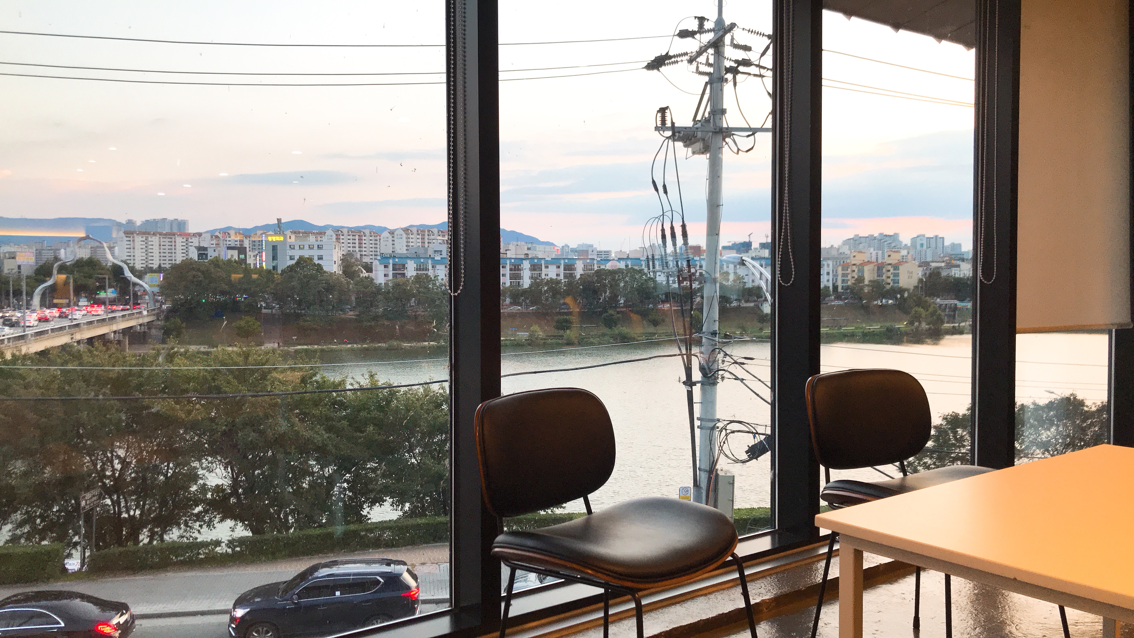 카페 2층 통유리 자리에서도 아양교 철길이 보이는 아쥬 굳 전망이당 ;-) 꺄