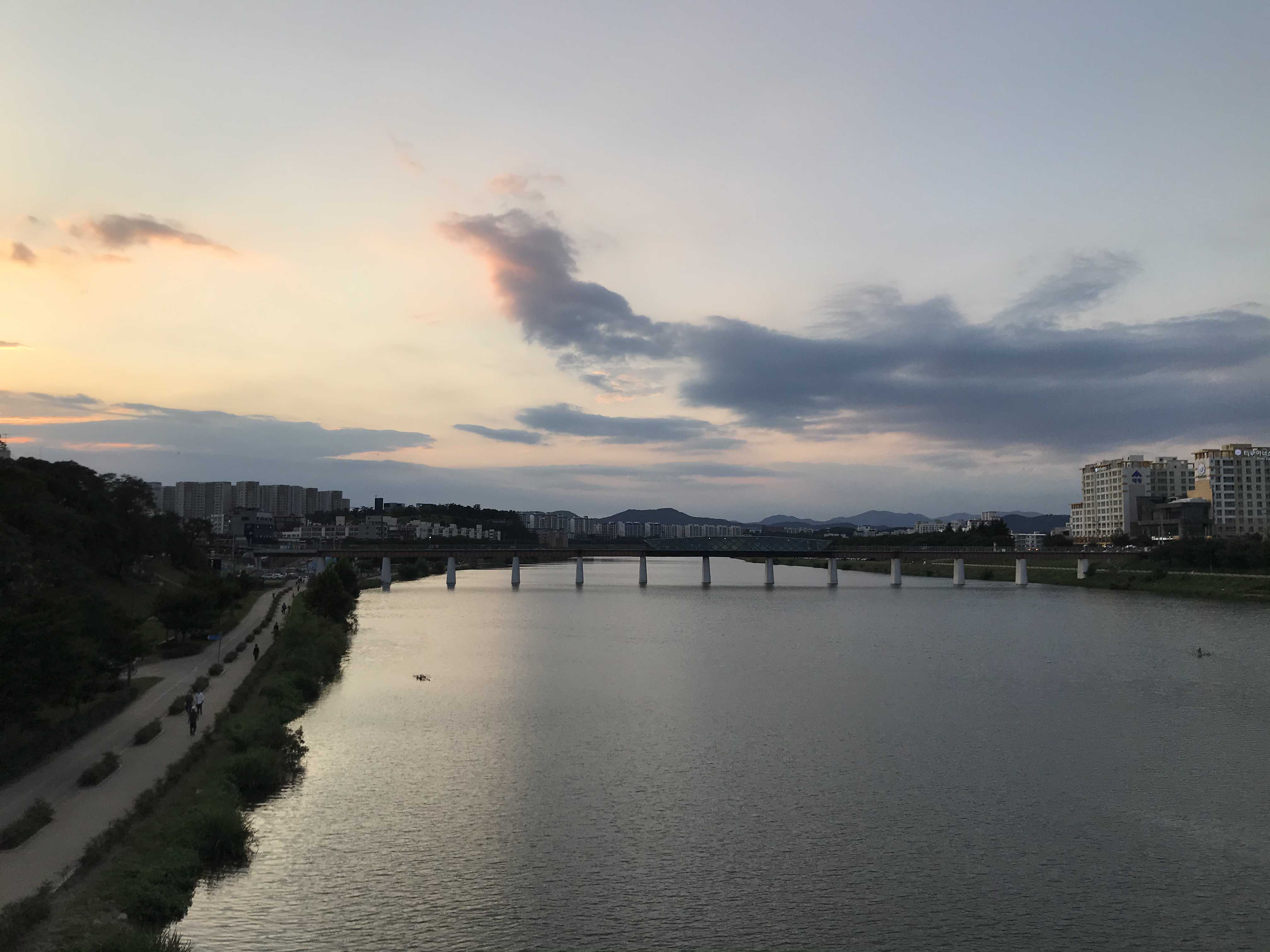 해가 뉘엿뉘엿할때 핑키핑키해지는 하늘을 볼 수 있다.