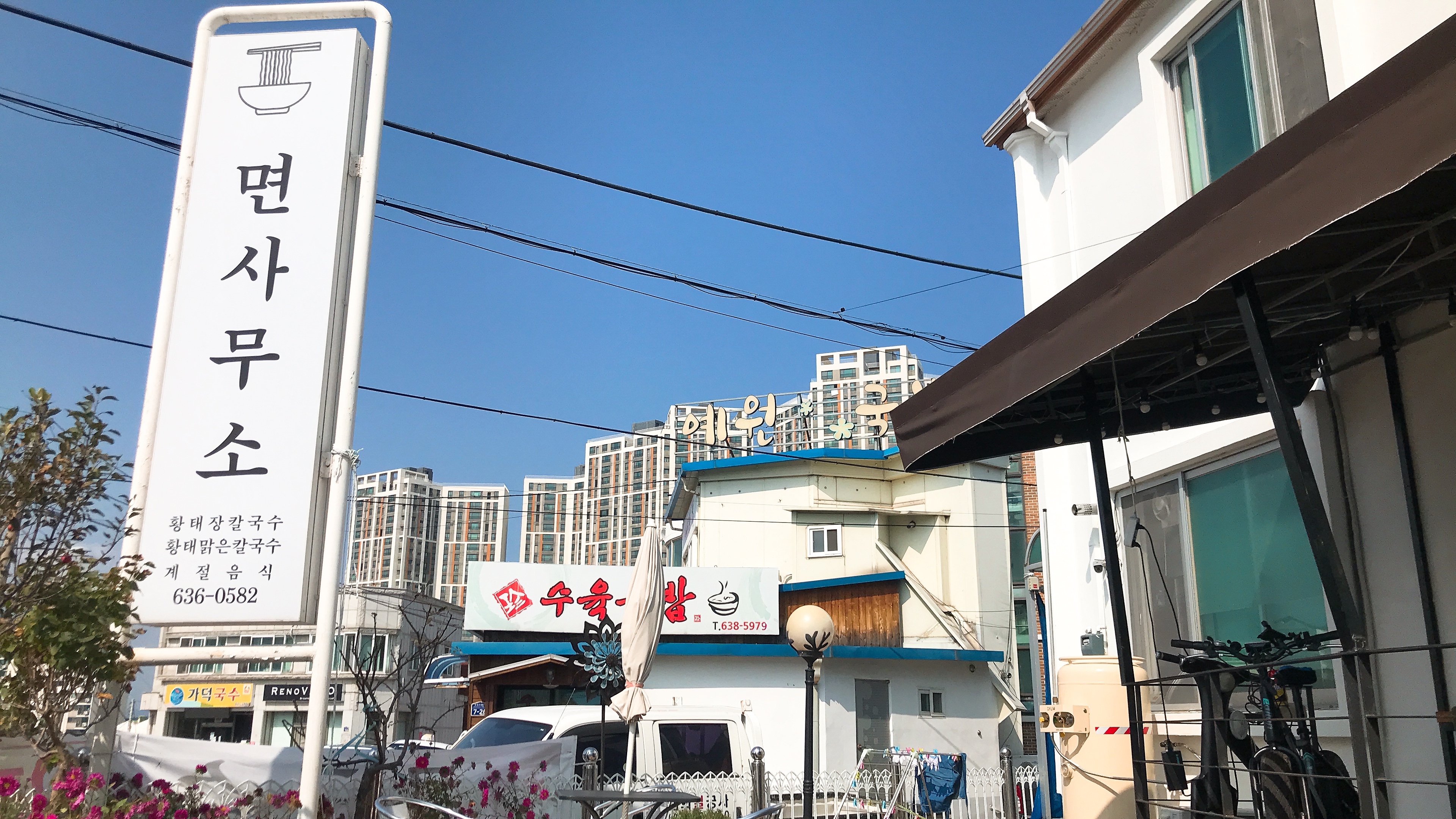 그래서 그 옆에 무얼 먹을까 고민하다가 황태장칼국수를 파는 면사무소에 갔다.
