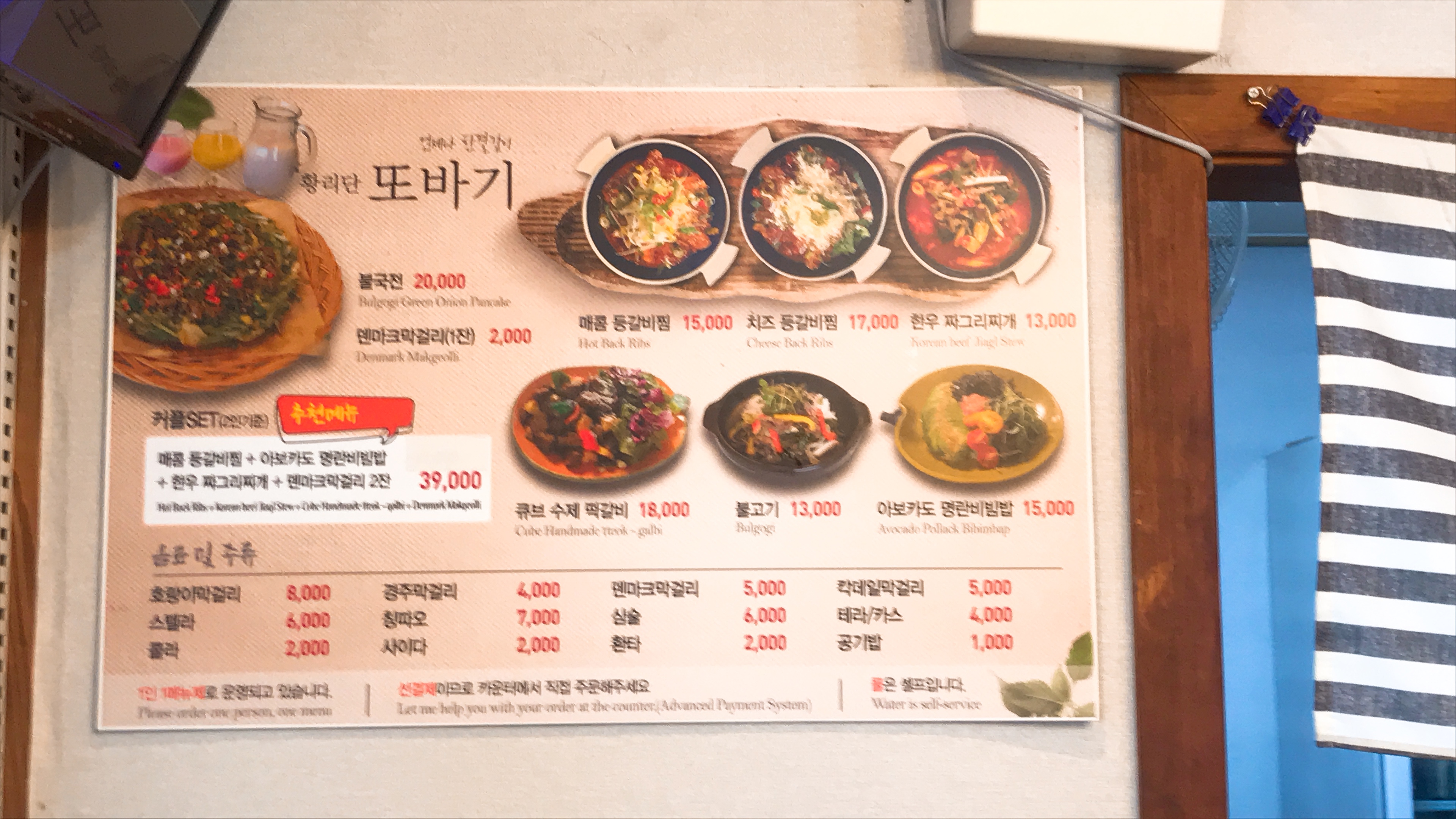 또바기 메뉴 2인셋은 시키지않고 구냥