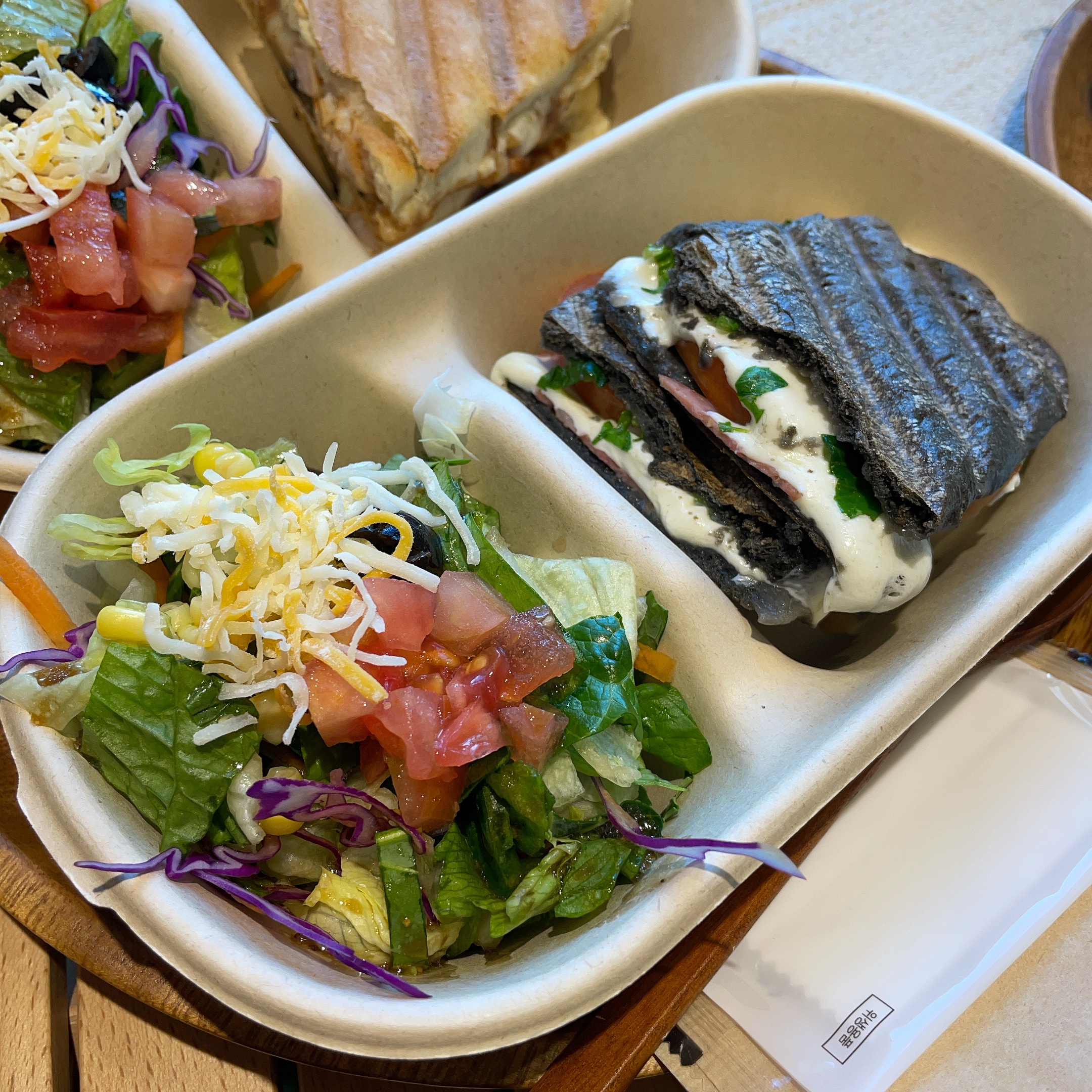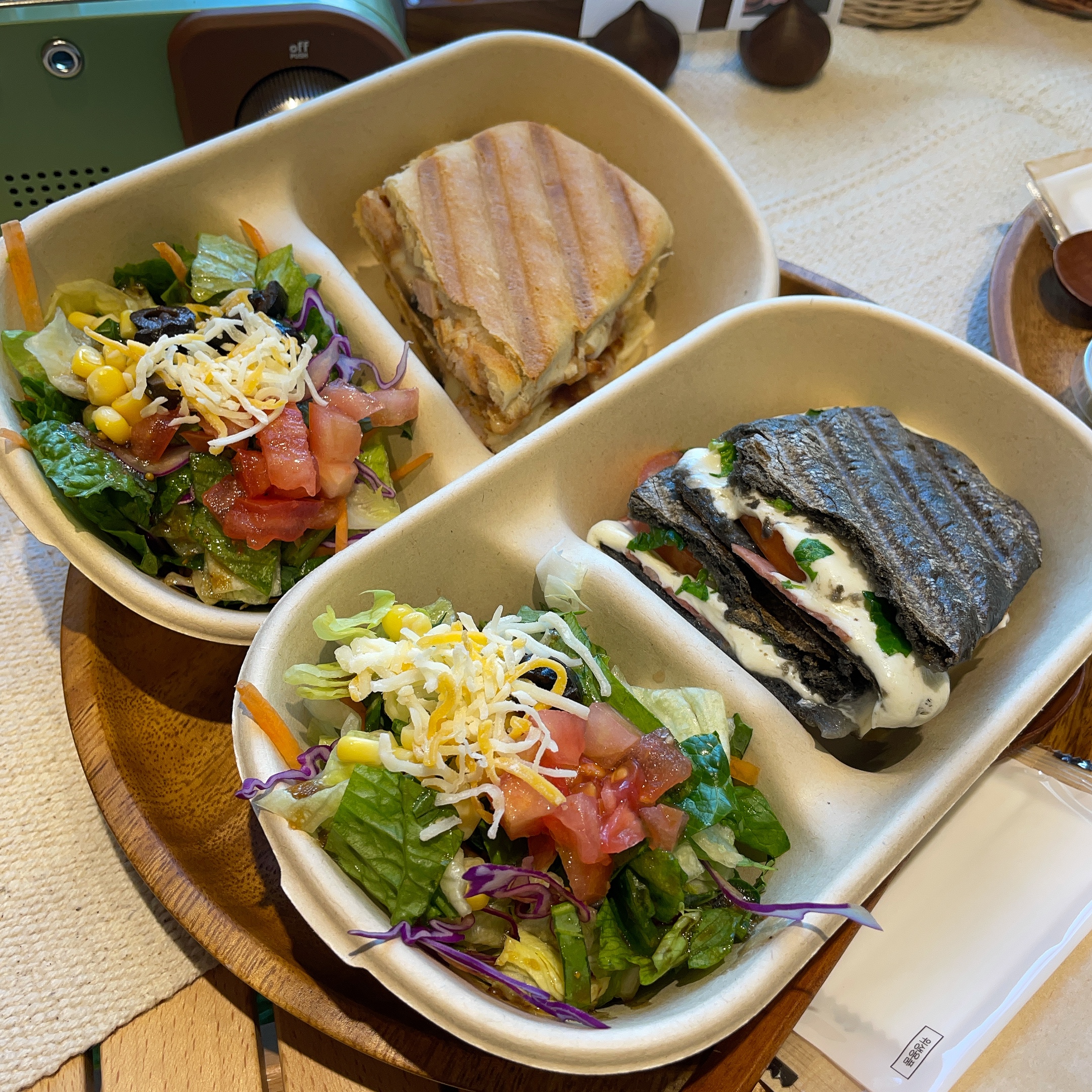 주문한 빠니니+ 미니 샐러드 셋트 두개와 무려 아보카도 샐러드를 한접시 더 시켰고