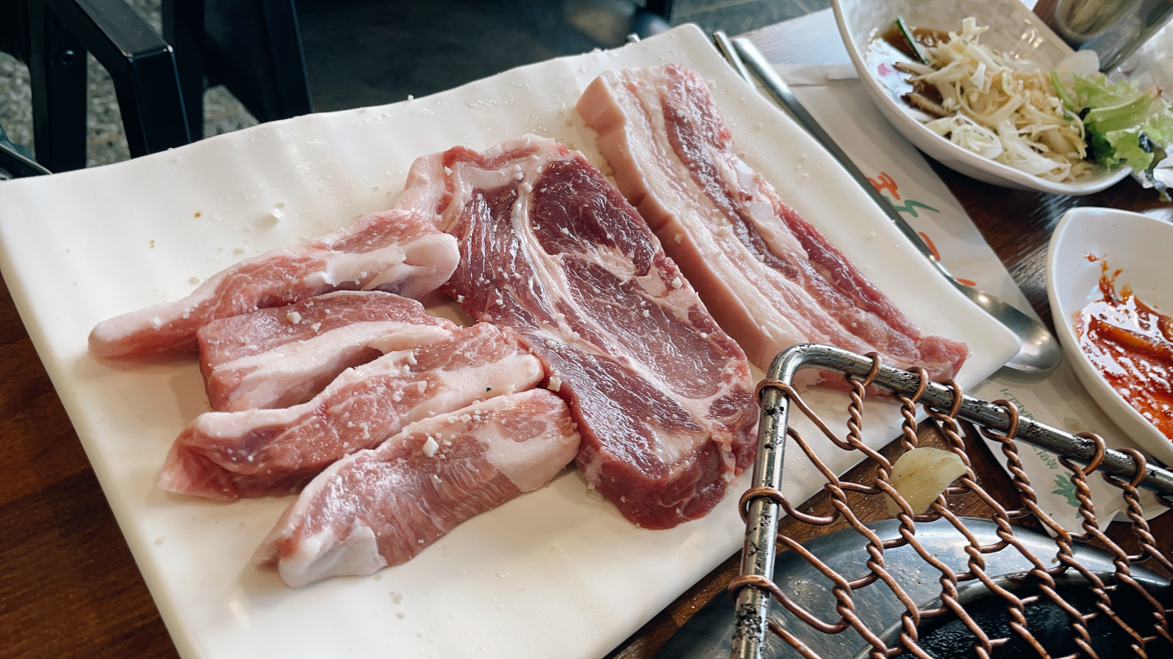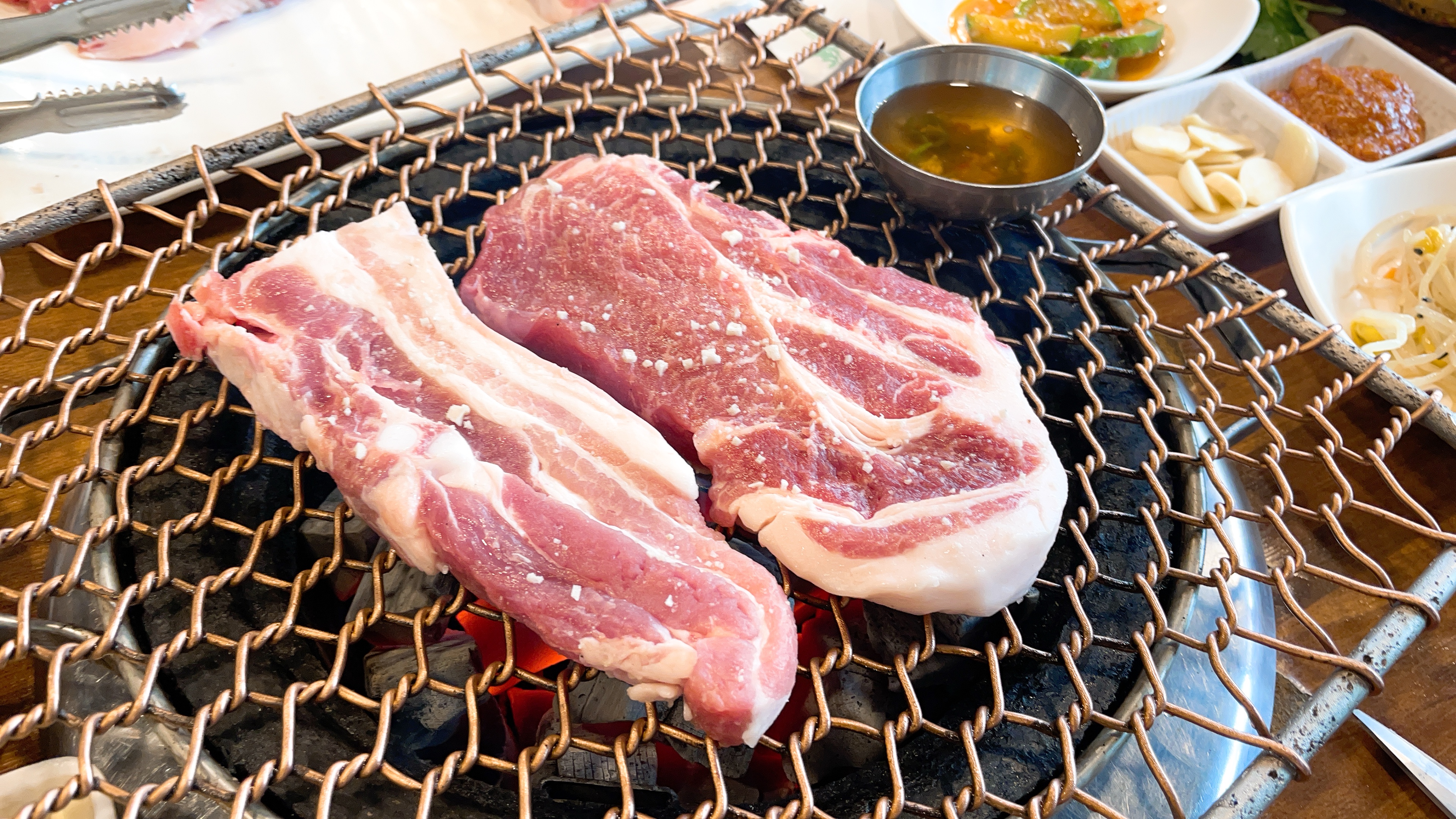 목살과 삼겹살 하나하나씩 챠아아