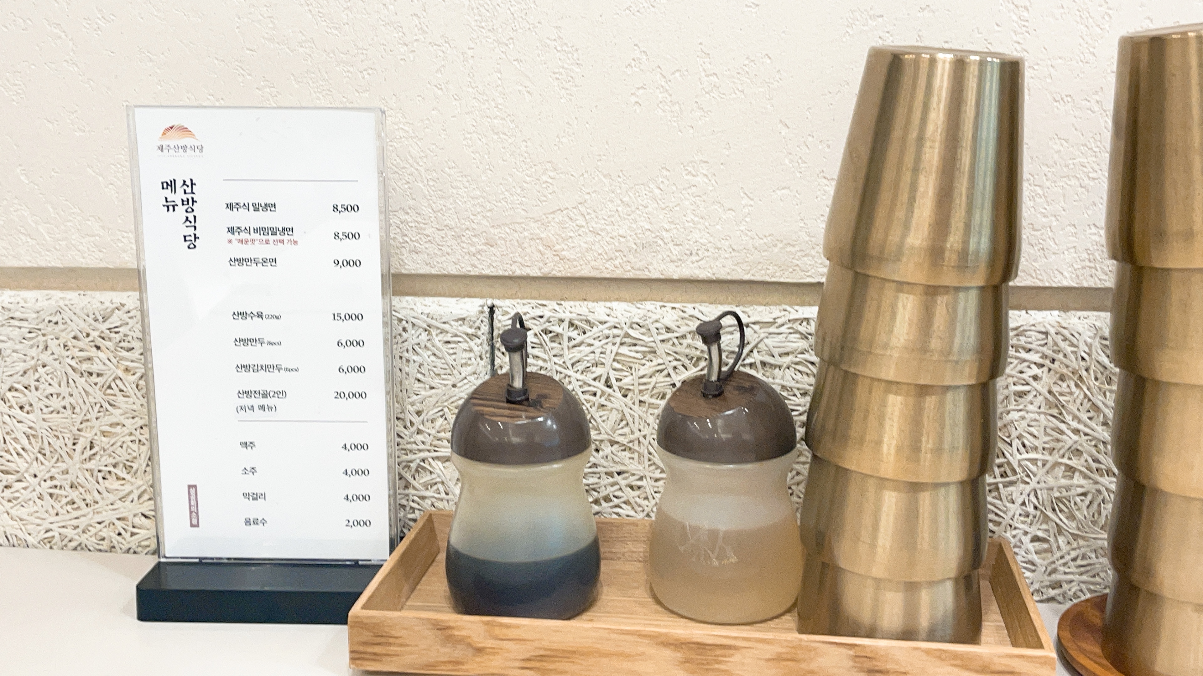 이번에 혼자 방문했으므로 산방만두온면으로 주문!