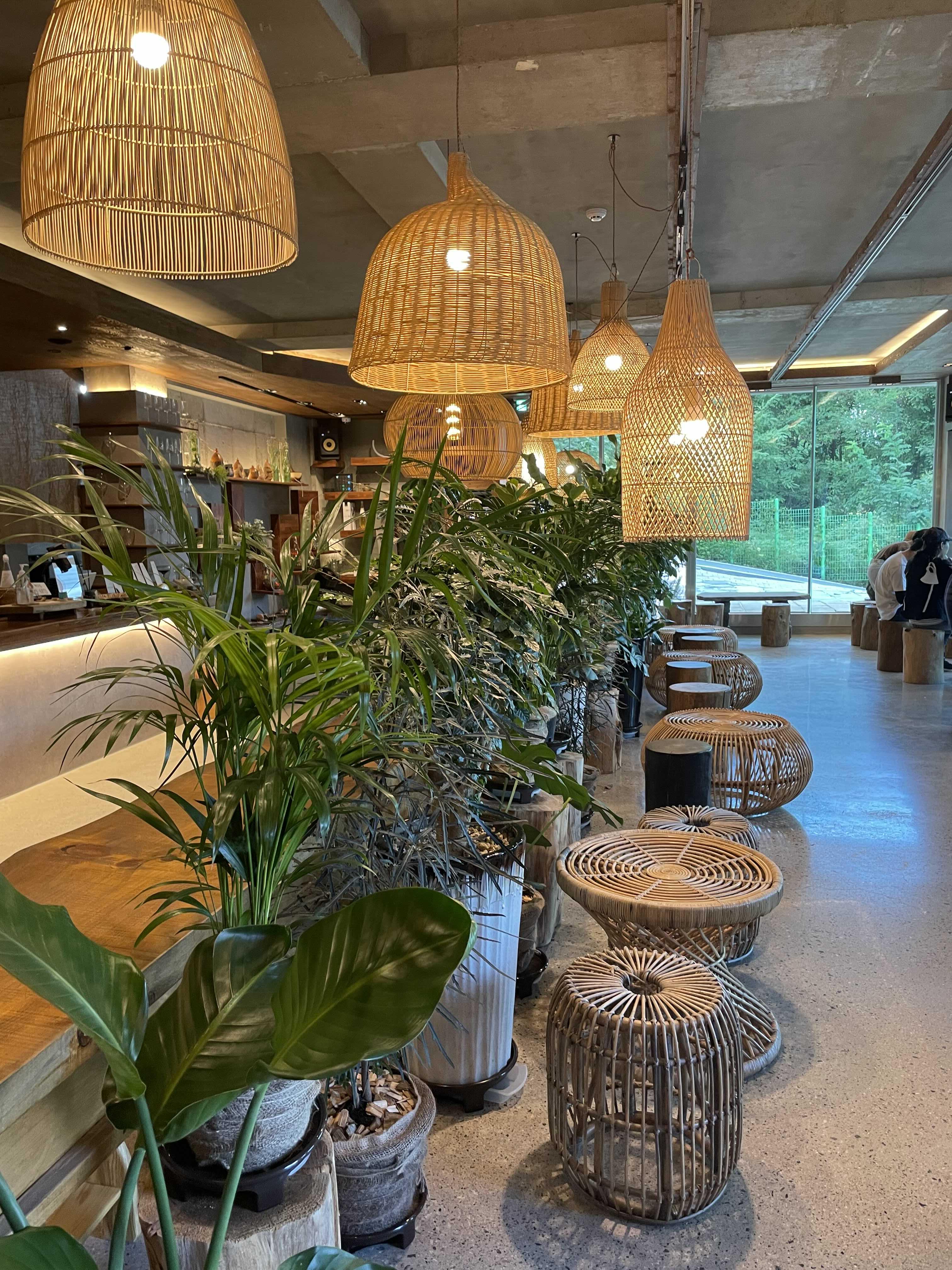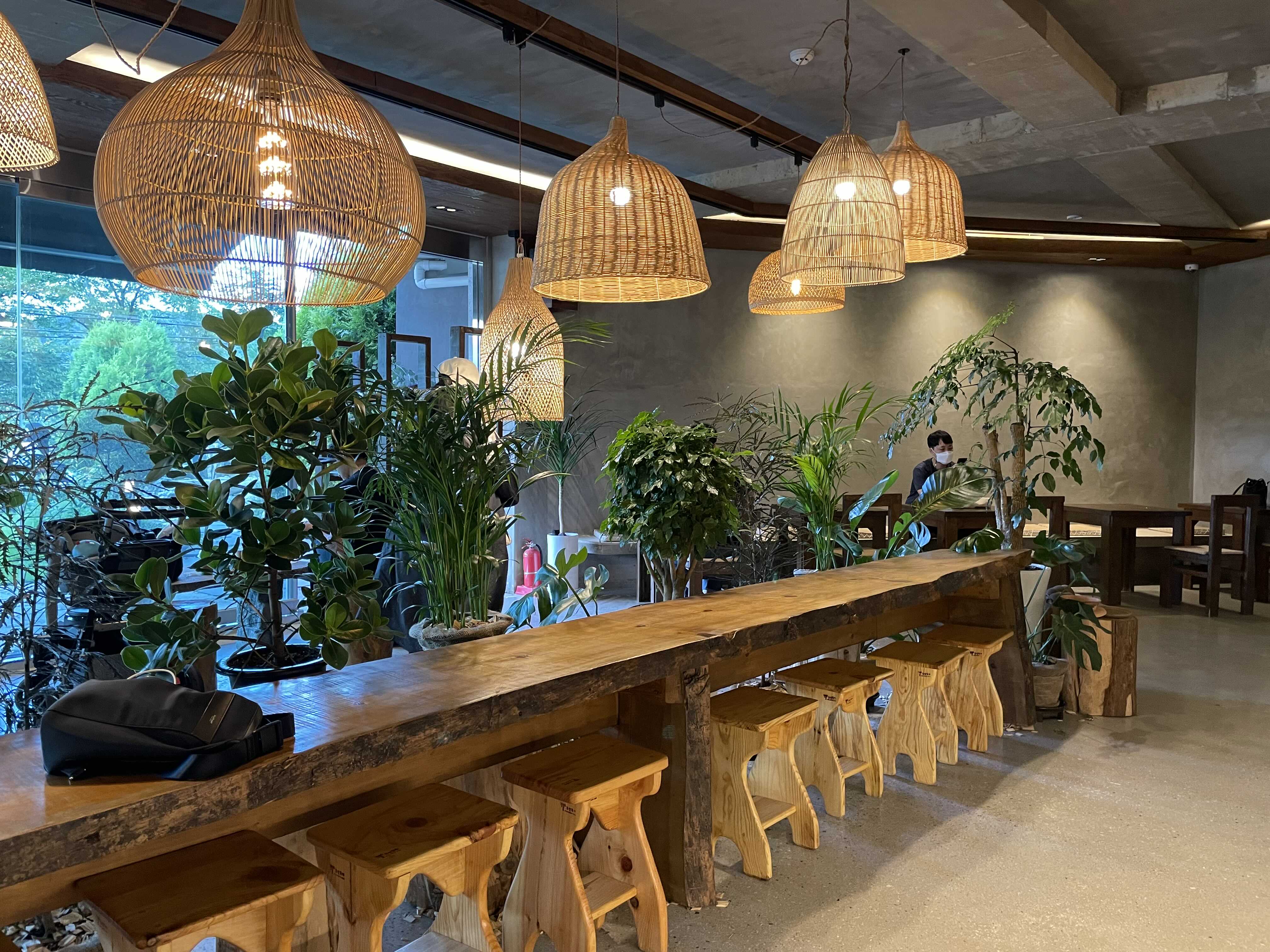 식물이 많은데 죄다 잘 가꿔져있구, 스툴도 이런 자연친화적인 컨셉 넘나 맘에듬!