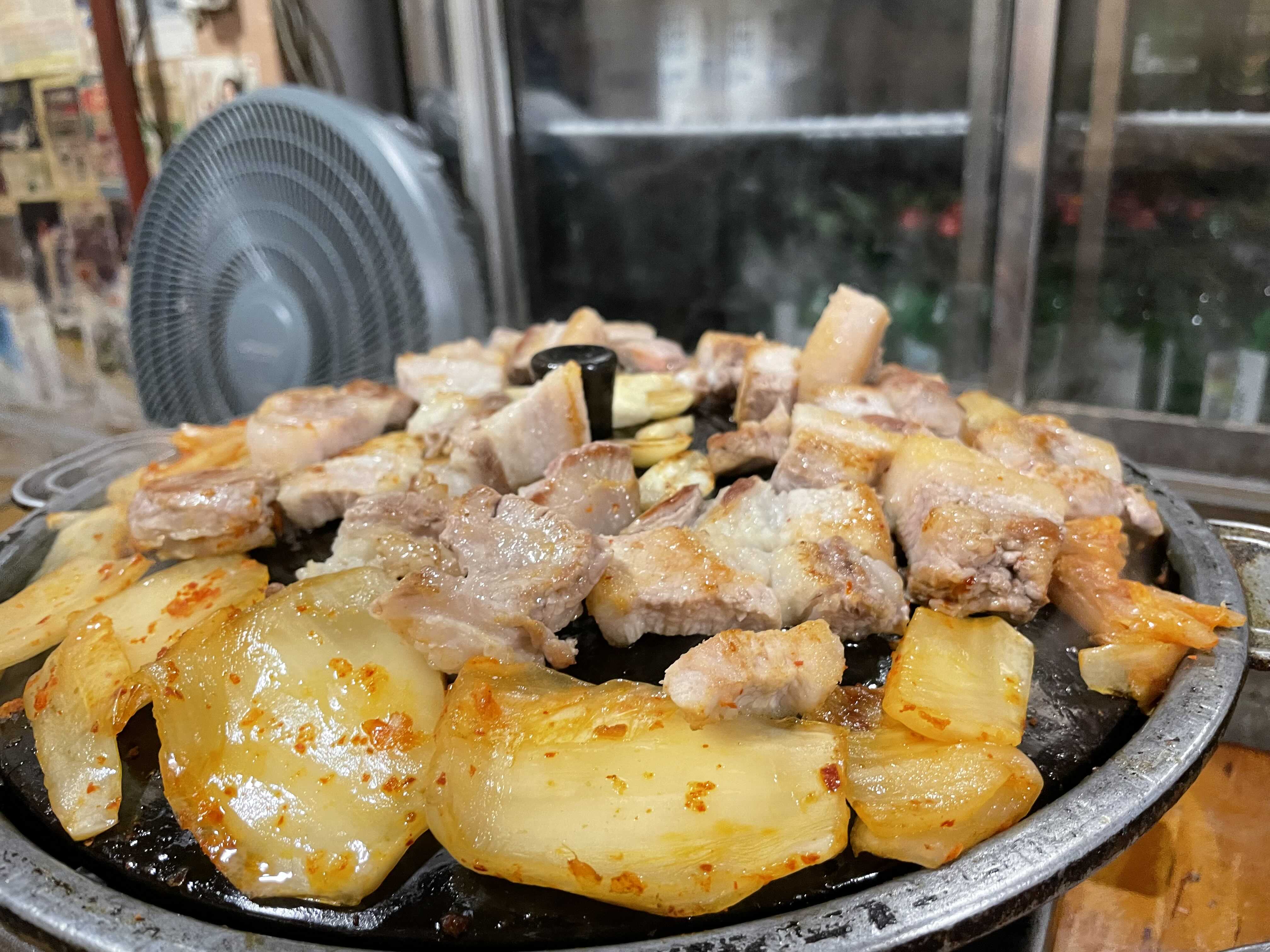 솥뚜껑에 나오는 삼겹살 맛도좋아!