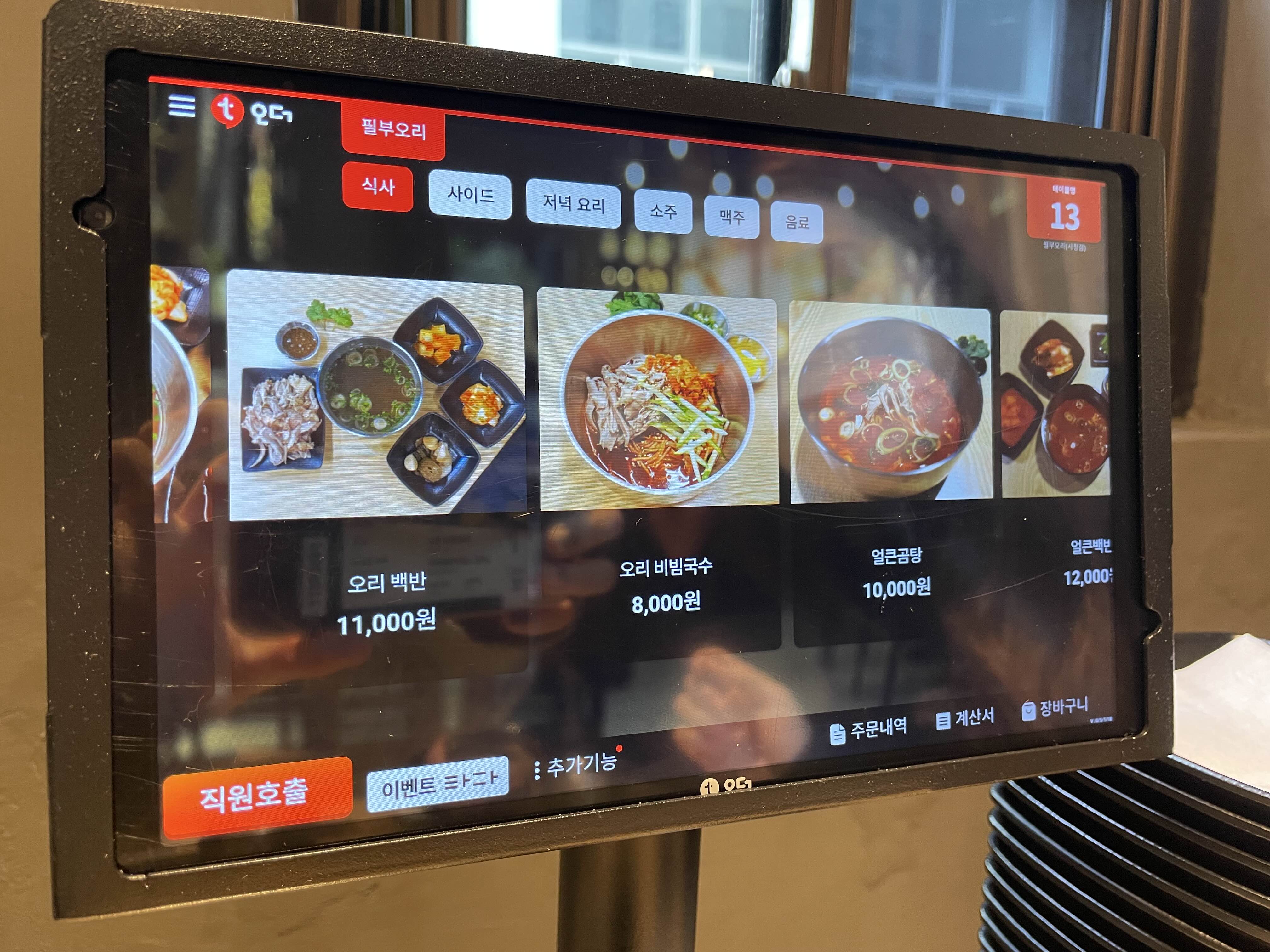 오리백반, 오리 비빔국수, 얼큰곰탕 등등