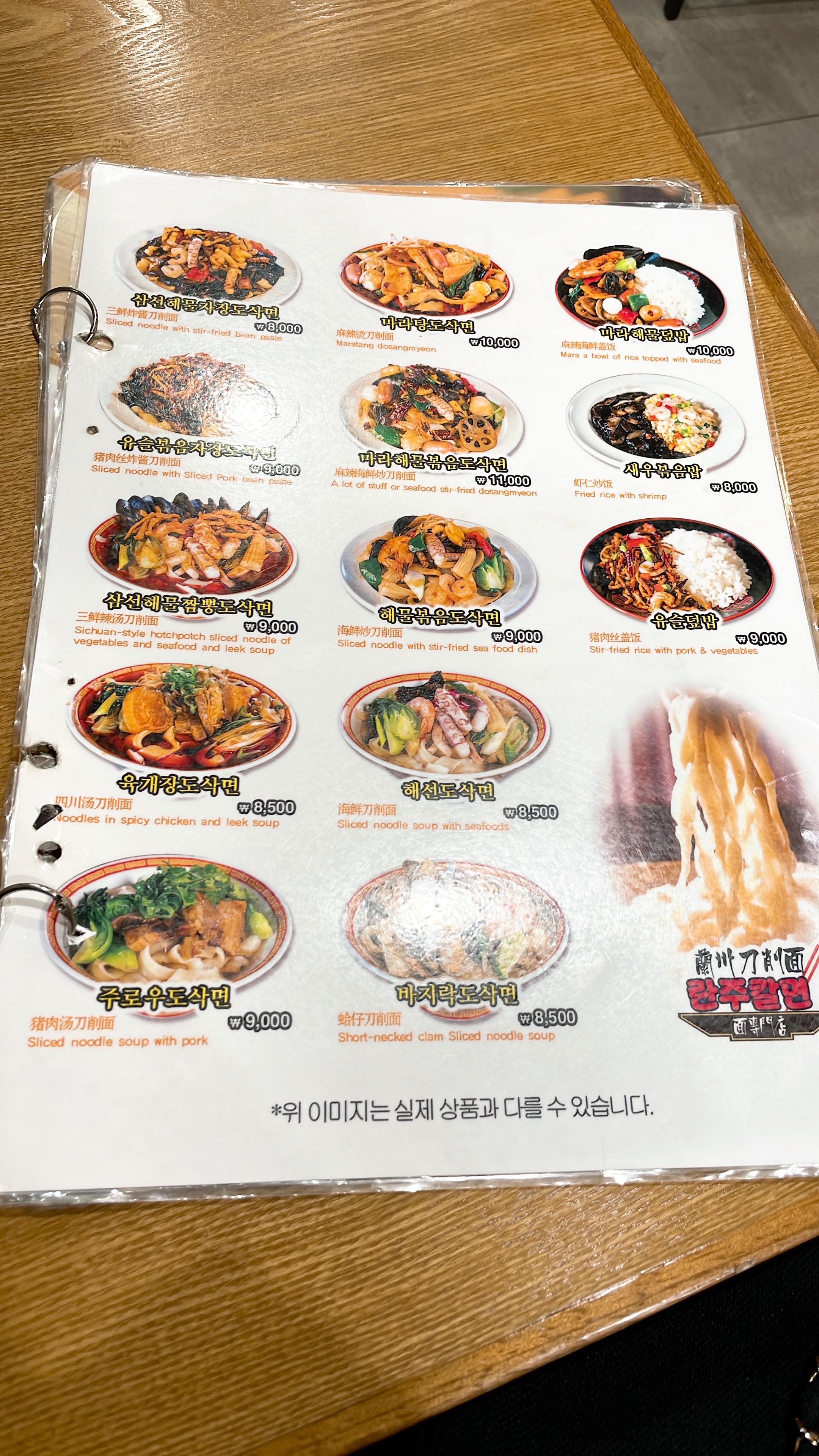 요리는 대부분 다 있고, 다 도삭면으로 주문 된다 ㅋㅋ