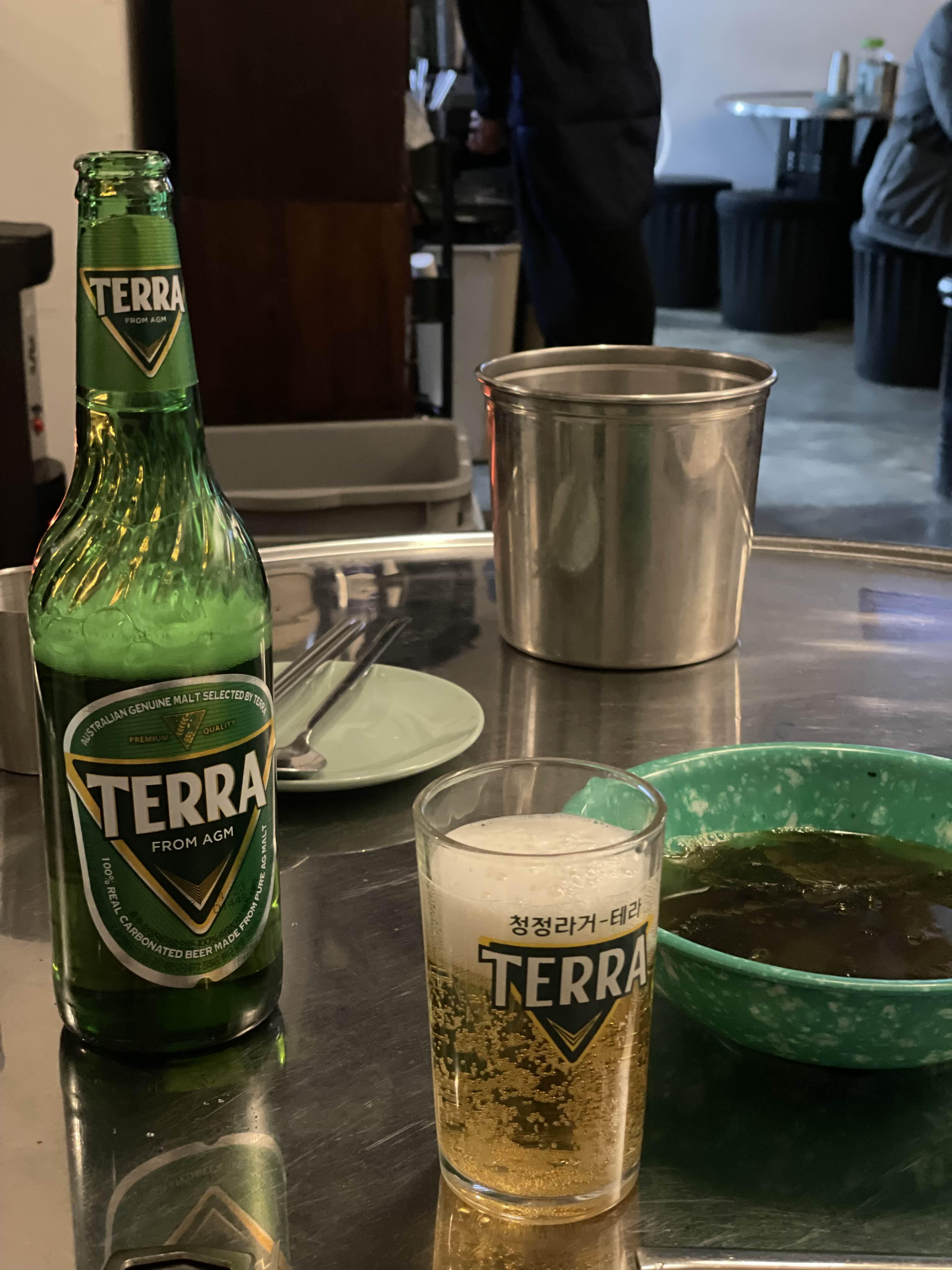 일단 사전 세팅된 미역국에 테라 한잔