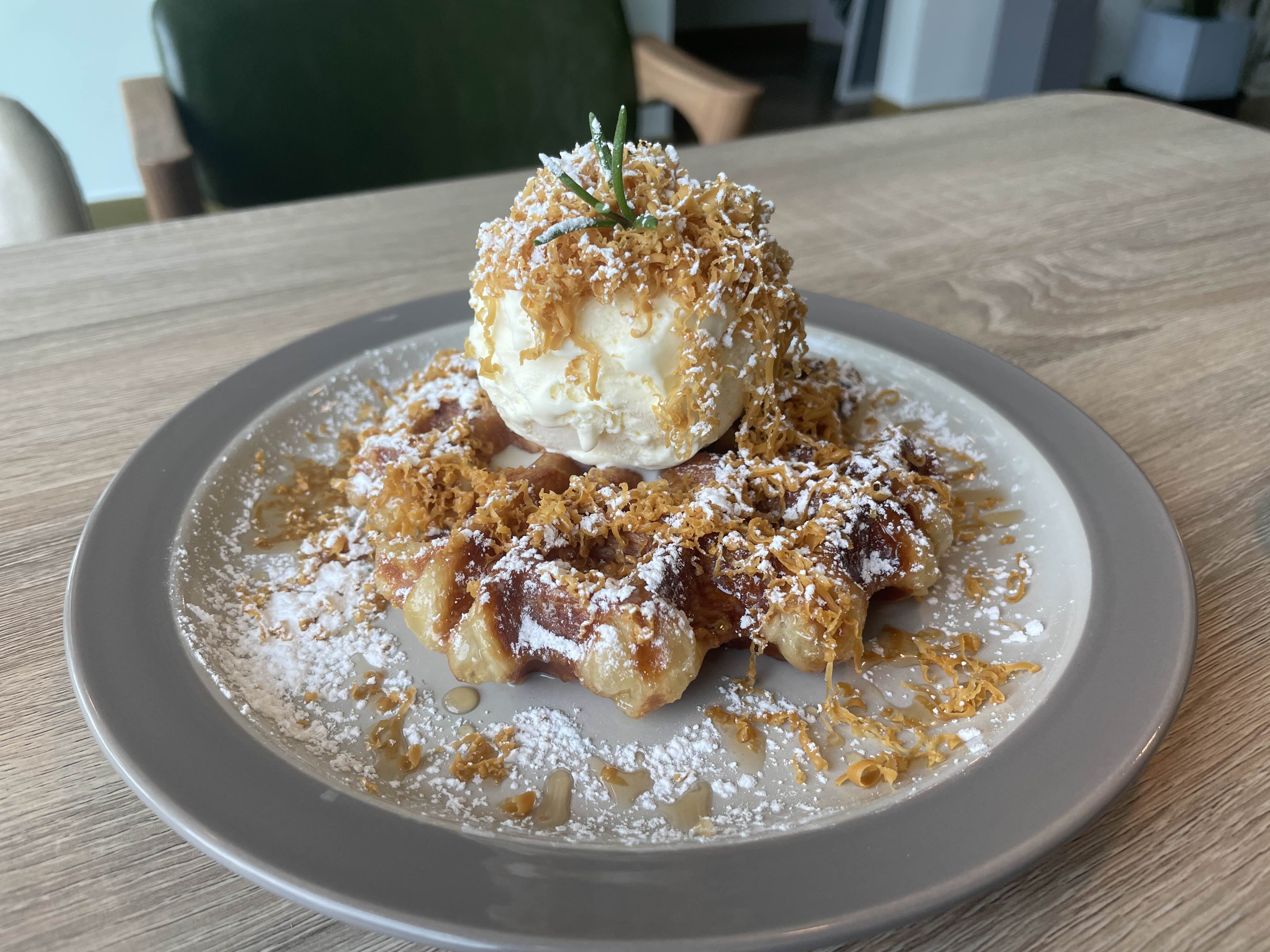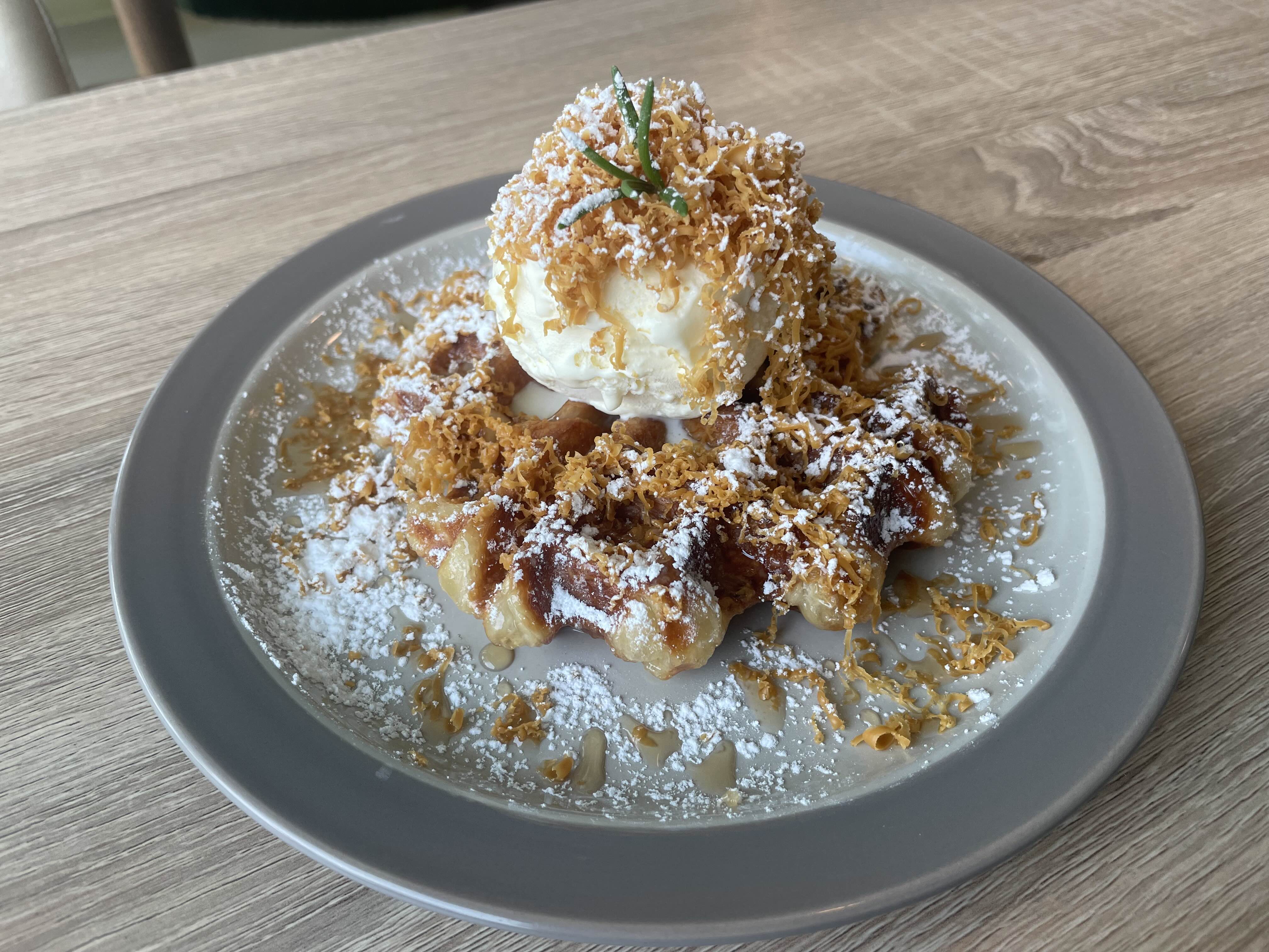 아이스크림 크로플에는 카라멜과 아이스림이 ㅎ_ㅎ
